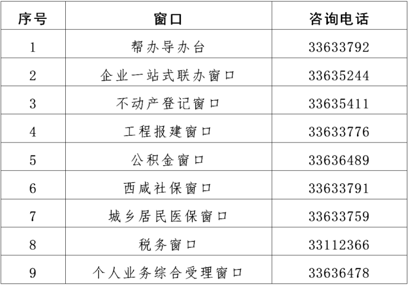 二、高频业务窗口咨询电话