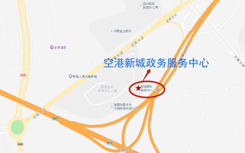 ②乘坐地铁1号线至“沣河森林公园”站,下车后乘坐1080路公交在“空港新城政务服务中心”站下车。