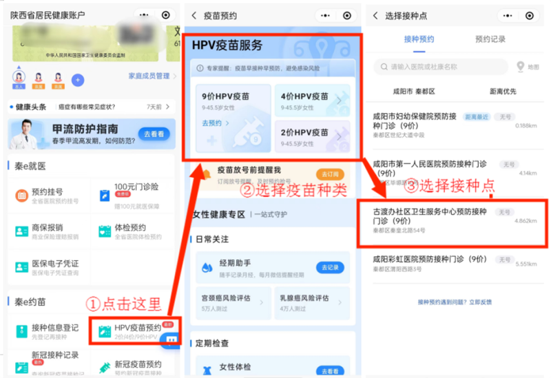 4.西咸新区四价、九价HPV疫苗通过“【健康陕西公众服务】小程序”进行预约,请市民朋友切勿听信其他渠道四价、九价HPV疫苗信息,以防上当受骗。