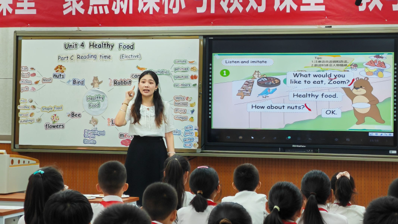 英语专场:沣东五小计晓婷老师执教《At the farm》,巧妙串联板块,引导学生完成一项项妙趣横生的项目任务。西咸二小罗娜老师执教《Healthy food》,课堂操练层层递进,逐步解析,张弛有度。