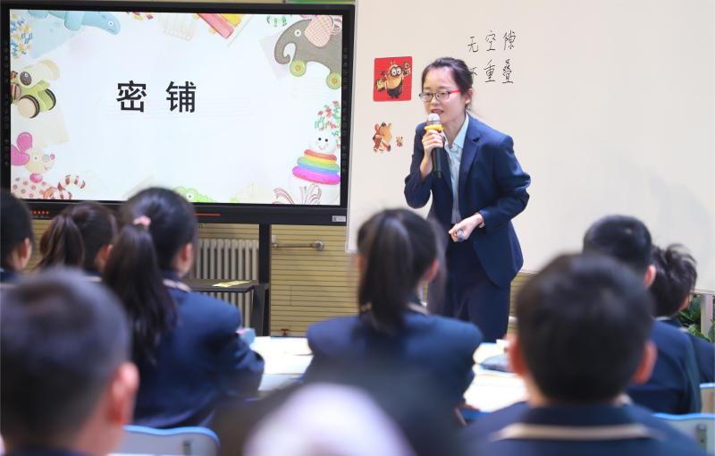 沣东第二小学胡阳阳老师执教四年级下册数学《密铺》一课,由学生熟悉的拼图导入,初步感知密铺特点。创设真实问题情境,解决学校图书室铺砖问题,从而探究图形密铺的奥秘,环节设置层层递进,注重学科之间的整合。