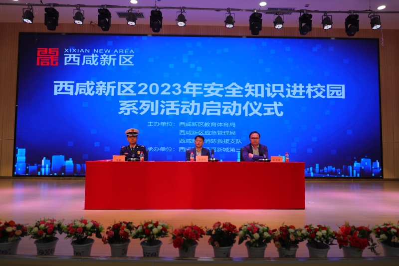 为切实增强新区中小学、幼儿园师生安全防范意识,推动全区校园安全教育和实践取得实效,在3月27日全国中小学生安全教育日,西咸新区教育体育局、应急管理局、消防救援支队在西咸新区泾河第三学校联合举办了以“学好安全知识 提高救援本领”为主题的“安全知识进校园”系列活动启动仪式。西咸新区管委会教育总督学张劲光,西咸新区应急管理局党委委员、副局长徐志胜出席仪式;西咸新区泾河新城消防救援大队大队长赵毅出席并主持启动仪式。