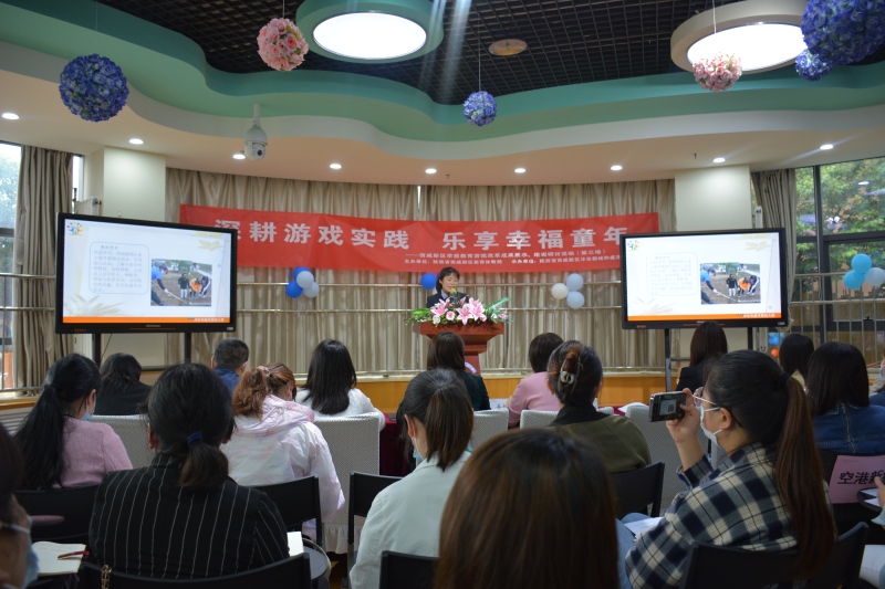 第三场活动于2023年5月25日在陕西省西咸新区沣东新城和盛花园幼儿园开展,以“深耕游戏实践 乐享幸福童年”为主题,《我们说了“蒜”》《麦子熟啦》课程案例生动展示了幼儿劳动教育图景,专家深度解析游戏活动的组织与实施,对教师已有经验进行了重构提升。