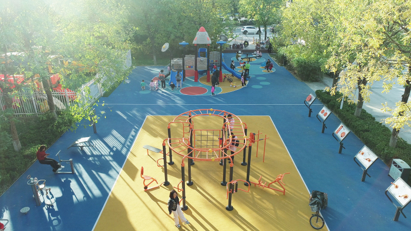 熙春园社区位于西咸新区秦苑一路以西,咸铜铁路以北,秦柳路以东,兰槐路以居住人口密度大,今年针对熙春园社区器材数量少、老久等问题做了改造提升南,新增配置了适合老年、中青年、青少年不同年龄段的健身器材,儿童健身区地面铺设以绿色、黄色为主色调,将西咸新区坚持“生态与文明共筑,绿色与发展共进”的理念融入健身环境,更好的满足了广大群众对力量练习、有氧锻炼、休闲娱乐、亲子社交等多样化需求,打造了一个充满活力、动感,又极具趣味性的社区时尚运动场。