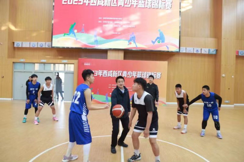 12月4日上午,2023年西咸新区青少年篮球锦标赛在沣西新城实验学校隆重开赛。西咸新区教育体育局党委委员、副局长马磊出席开幕式并为比赛开球。