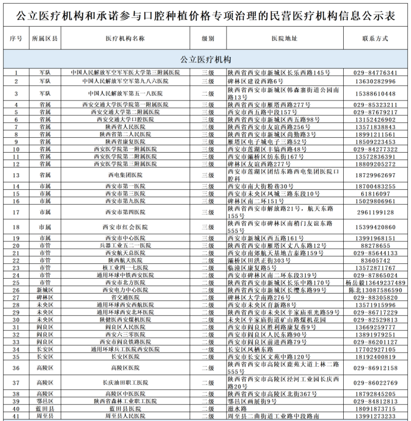 公立医疗机构和承诺参与口腔种植价格专项治理的民营医疗机构信息公示表(356家)