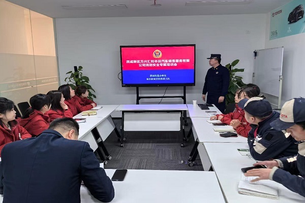 辖区各企业陆续开工恢复生产,为确保复工复产阶段辖区消防安全形势持续稳定。近日,西咸新区消防救援支队渭城街道消防所走进万兴汇合丰田有限公司开展消防安全知识培训。
