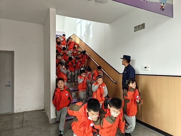 随着一阵急促的警报声响起,消防安全应急疏散演练正式拉开帷幕。老师们迅速组织学生,按照预定的疏散路线有序撤离。学生们用湿毛巾捂住口鼻,弯腰低姿,沿着楼道和楼梯快速而安静地向操场安全区域疏散。整个过程中,师生们配合默契,秩序井然,没有出现拥挤、推搡等情况。