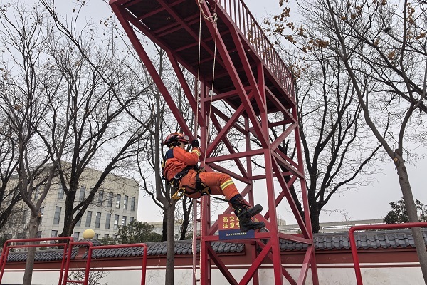 为适应复杂环境下应急救援任务需求,进一步提升指战员在高空等特殊场景下的绳索救援技术水平,近日,西咸新区消防救援支队王寺东街消防救援站开展绳索救援上升与下降训练。