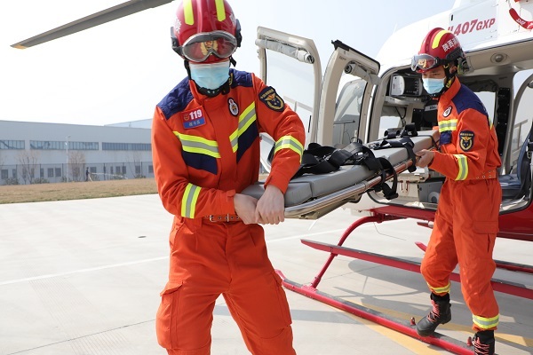 实操训练主要开展了直升机实机悬停登机、离机和快速运转伤员,训练前教练员对登机注意事项、安全常识、紧急出口的使用方法以及医疗输送技能和安全注意事项进行了详细的讲解,参训队员严格按照操作规程,认真开展登机、离机、快速转运伤员训练,为下一步快速完成航空救援任务奠定了基础。