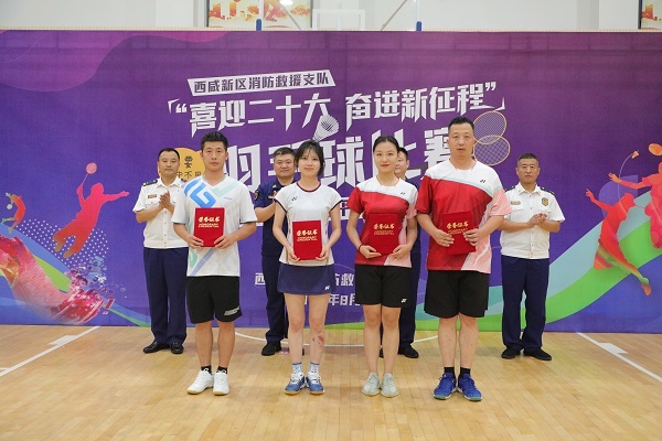 为进一步丰富活跃队伍文化生活,提升队伍凝聚力和战斗力,落实总队在西咸消防支队成立羽毛球骨干队伍的相关要求,8月26日,西咸消防支队举办“喜迎二十大 奋进新征程”羽毛球比赛,支队在家党委成员出席开、闭幕式。来自全区的7支代表队、73名运动员参加团体、男子单打、女子单打、男子双打、混合双打5个项目的角逐。