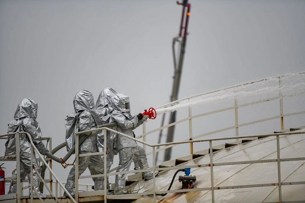 消防演练进企业,实战联动保平安。针对秦汉新城辖区易燃易爆企业密集,火灾危险性大的特点,西咸消防支队联合辖区陕西天地瑞石油有限公司开展石油储罐火灾扑救实战拉动演练。此次演练中,大跨距灭火消防车、灭火救援机器人以及指挥中心图传系统等高精尖产品集体亮相,在实战中检验了实战效能。并通过网络直播的形式让广大网友沉浸式切身感受灾害事故处置全流程,也展现了西咸消防初战机制改革成果。