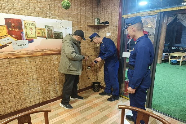 此次夜查,主要对景区人员密集场所开展夜查,共检查单位6家。在检查过程中主要针对各单位是否存在私拉乱接电线以及违规使用大功率电器、是否违规动用明火、是否违规存放液化气罐、消火栓内是否有水、灭火器是否能正常使用等情况进行了详细摸排,并在检查过程中对存在问题单位进行了现场指导整改。