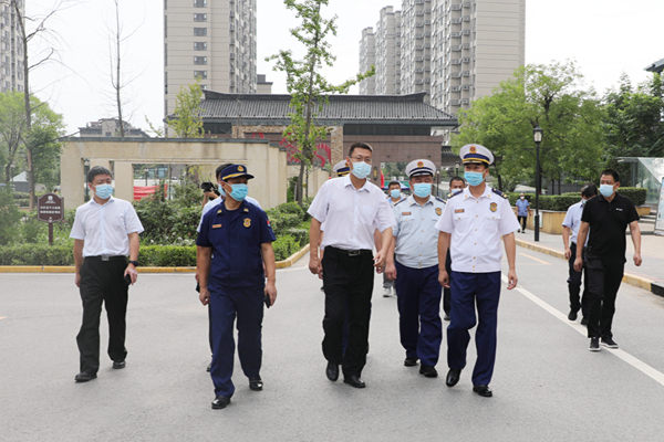 8月10日下午,西咸消防支队支队长高国顺、政治委员彭其山率督导组对沣东新城安全隐患大排查大整治工作进行检查指导,沣东新城管委会马建昌副主任、应急局、街办、沣东消防大队负责人陪同检查。