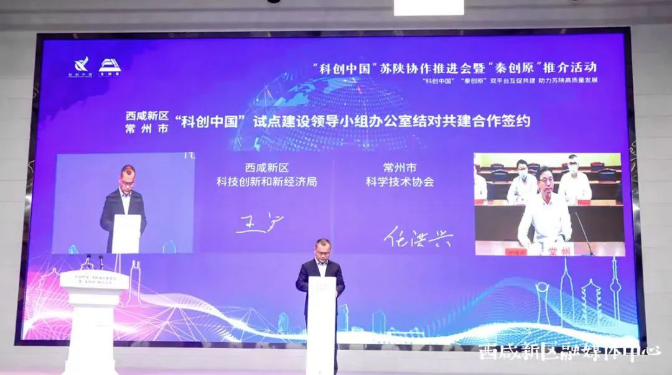 在签约环节,西咸新区与常州市“科创中国”试点建设领导小组办公室、西安市科协与苏州市科协、南京江宁开发区与咸阳市高新区等3对城市、园区以云签约的形式,签署结对共建合作协议。