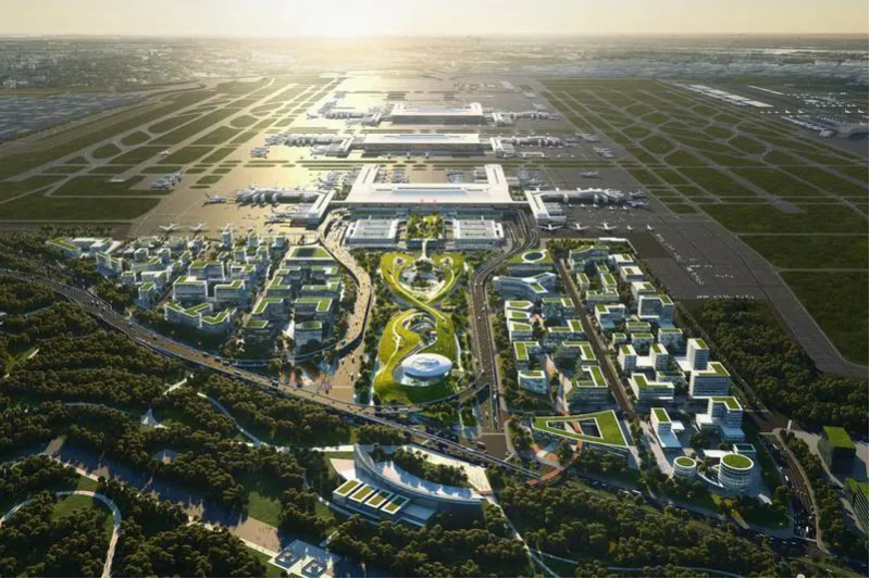T5站前商务区是陕西、大西安对外开放的空中新门户和新窗口。当前,西安咸阳国际机场三期扩建工程建设正酣,T5站前商务区市政基础设施项目是为三期扩建工程中T5航站楼提供配套服务、为T5站前商务区发展提供基础保障的关键性市政建设项目,包括高架桥梁工程、路网工程以及地下环路工程。建成后主要承担T5航站楼、GTC及站前商务区的客流集散功能。