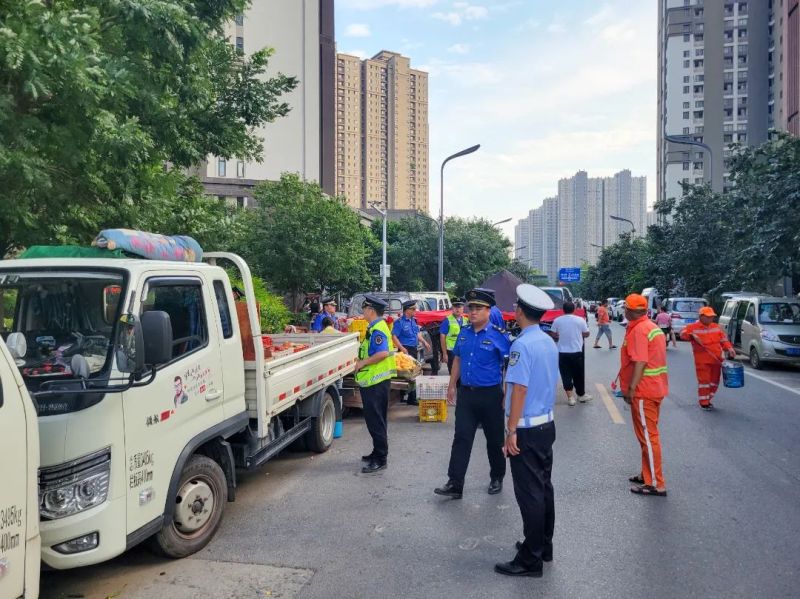 个体经济活跃是城市繁荣的写照,但当占道经营、出店经营等违规违法现象出现后,这些为市民提供便利的地方,同时也为民添了“堵”。为进一步规范市容市貌,提升辖区市容环境秩序,积极营造干净整洁、靓丽有序、文明和谐的城市人居环境。近日,能源金贸区综合行政执法支队聚焦占道经营、市容环境卫生等突出问题,联合辖区交警、城市管家志愿者、保洁人员开展为期一个月的集中整治专项行动。