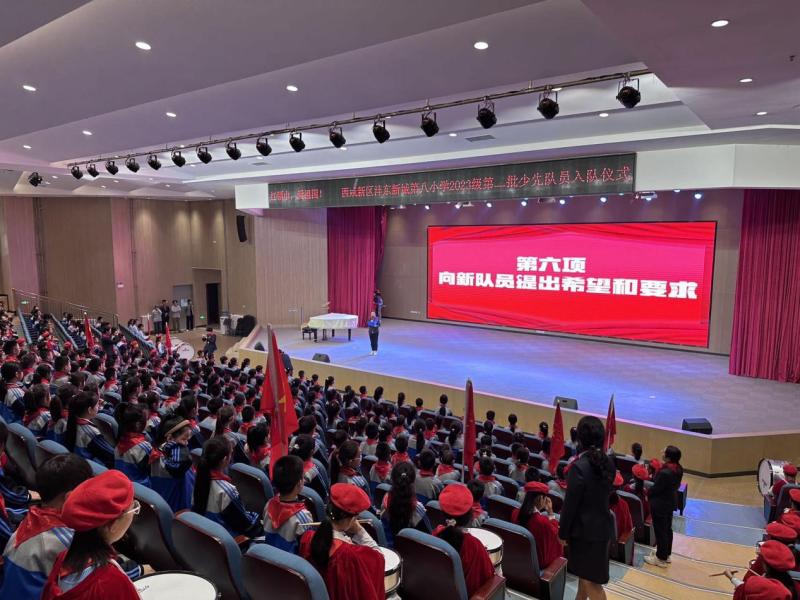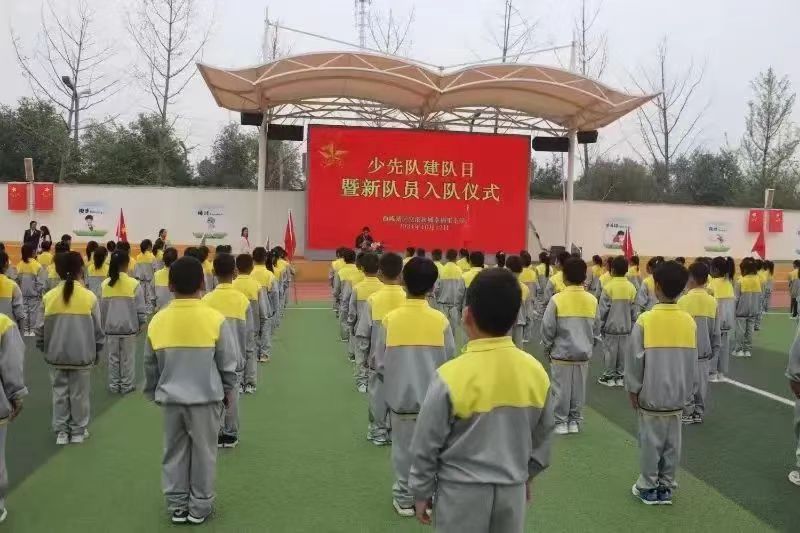 在沣东第一小学新队员入队仪式上,124名新队员精神抖擞,迎接这一光荣时刻。当红领巾在胸前飘扬,新队员们庄严地敬上了自己人生中的第一个少先队队礼,并在大队长的带领下,嘹亮地唱起队歌,庄严宣誓。与会领导嘉宾向新成立中队授旗和中队辅导员颁发聘书。