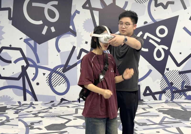 在XR大空间制作中心,师生们戴上眼镜,在NPC熊小米带领下沉浸式体验原创项目《灵霄逸境》。“模拟体验太真实了,仿佛真的置身于那个世界!”广播电视编导专业大三学生岳新月兴奋不已。实景拍摄空间完美复刻的现代生活场景,更让同学们了解了,“原来短剧是这样拍成的!”