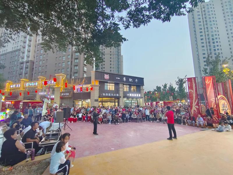 此后,崇文佳苑一社区、崇文佳苑三社区、泾河城服以及泰隆银行,共同举办“社区邻里情·浓浓邻里情”共庆华诞社区烟火邻里节活动。 在此次社区邻里节活动中,不仅有社区的艺术团演职人员,更有社区工作者、社区居民的参与,使邻里节成为了全民参与共享同乐的欢乐大舞台。此次社区邻里节不仅展示了对美好社区的愿景和发展方向,更为促进居民之间互帮互助、共同进步提供了平台,并呼吁大家积极参与社区建设,共同营造和谐幸福的家园。在社区广场上布置了各式各样的集市摊位,公益助销、反诈驿站、公益送鞋、非遗手工漆扇、脸部彩绘、美食街区、现场抽奖等等。台上歌舞不断,台下掌声连连,音乐声、叫卖声、欢笑声此起彼伏,居民走出小家,融入社区大家庭中来,让“陌邻”变“睦邻”。如今,崇文佳苑社区邻里节已经不单单是让居民“图一乐”的文艺活动,更是具有社区特色的党建品牌。