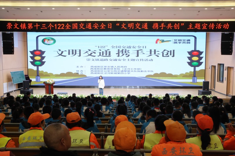 2024年12月2日是第十三个“122全国交通安全日”,主题是“文明交通携手共创”。为深入贯彻落实省市及新区关于开展“全国交通安全日”活动要求,增强崇文镇人民群众交通安全意识,普及交通法规知识,崇文镇人民政府联合西咸新区教育体育局(泾河工作部)、西咸新区公安分局交通警察大队执勤五中队共同在泾河新城第四小学开展主题宣传活动,旨在倡导师生文明出行,预防减少交通事故,营造安全、畅通、文明的道路交通环境。