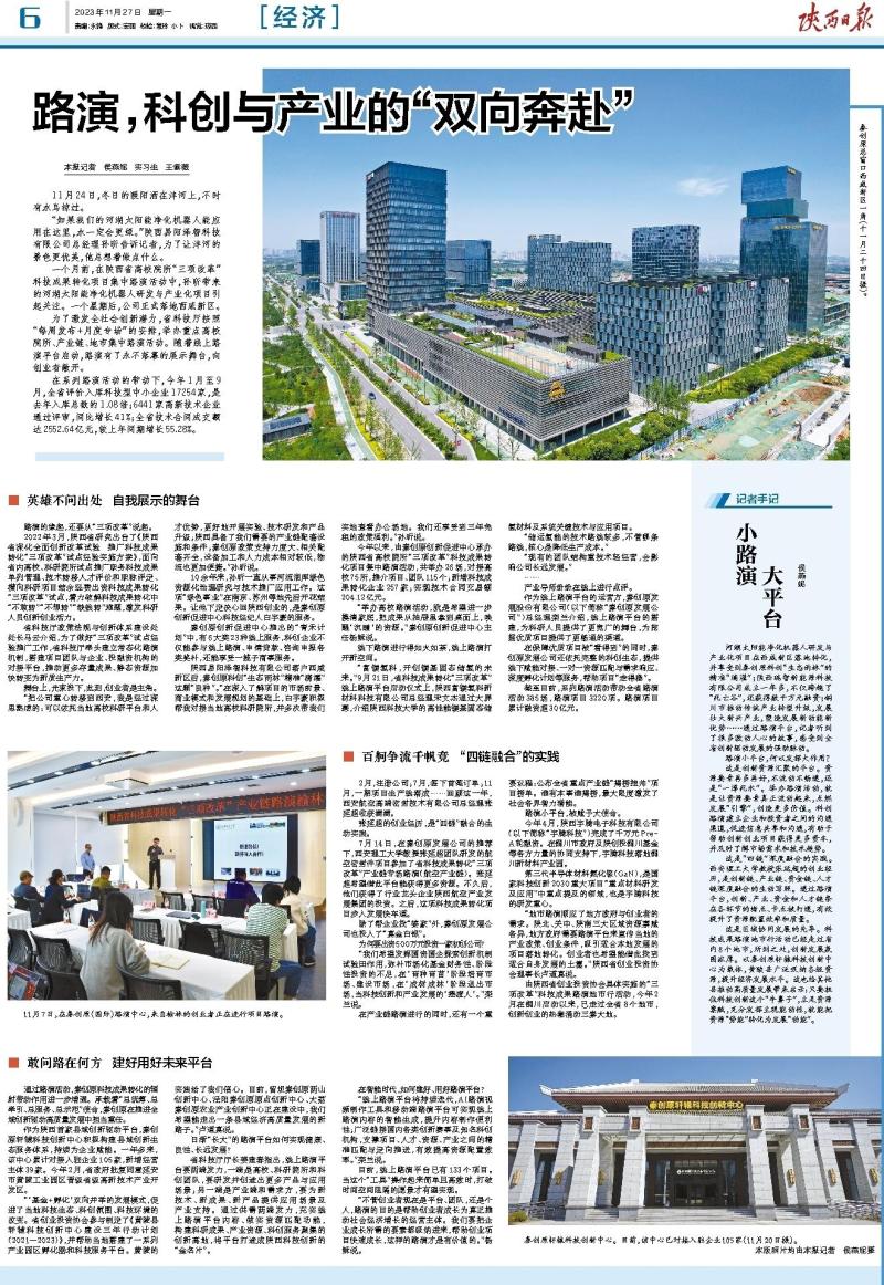 通过路演活动,秦创原科技成果转化的辐射带动作用进一步增强。承载着“总统筹、总牵引、总服务、总示范”使命,秦创原在推进全域创新驱动高质量发展中担当重任。