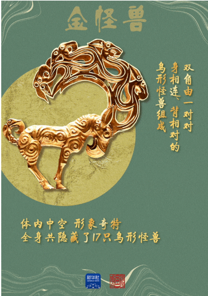 出土于匈奴墓葬中的金怪兽,反映了匈奴人对勇猛强悍动物的崇拜。它被誉为最有代表性的匈奴艺术珍品,印证了文明的交流与交融。