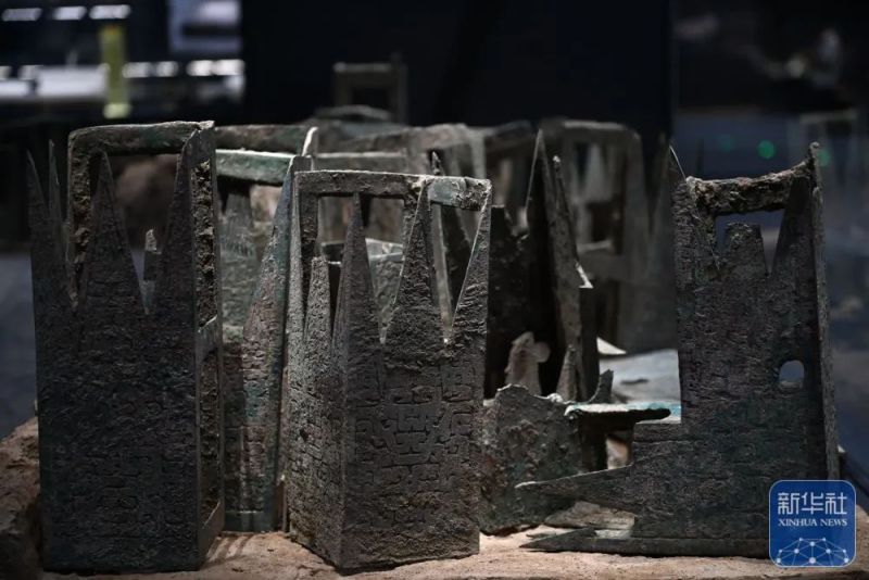 | 陕西历史博物馆秦汉馆内展出的春秋铜构件(5月13日摄)。|