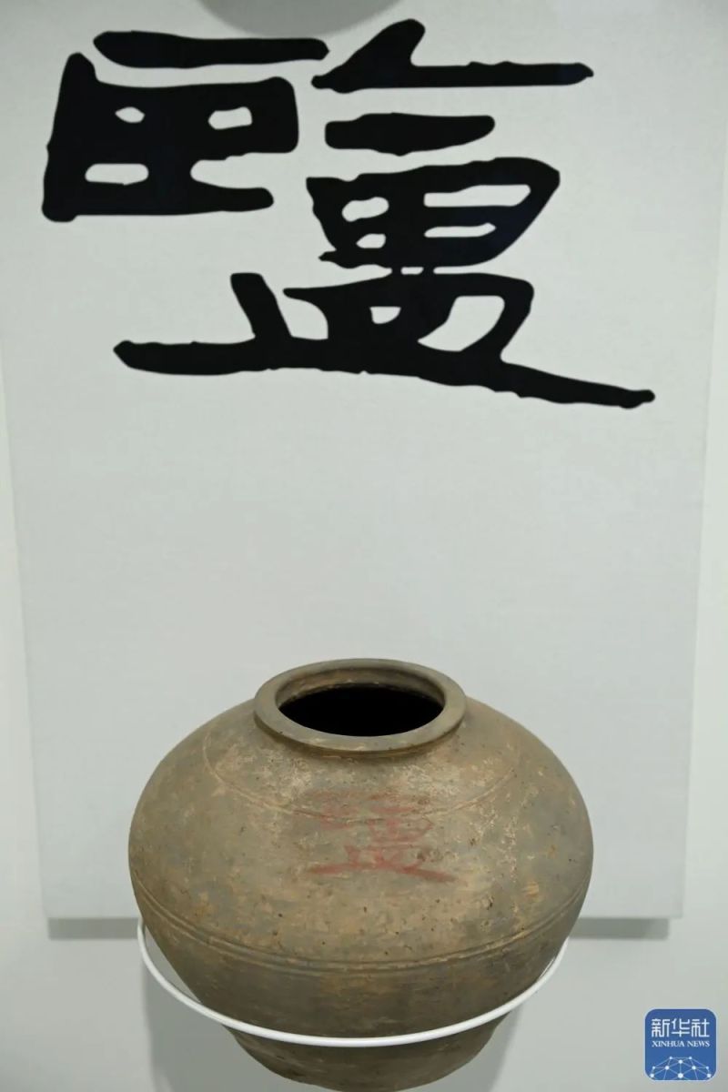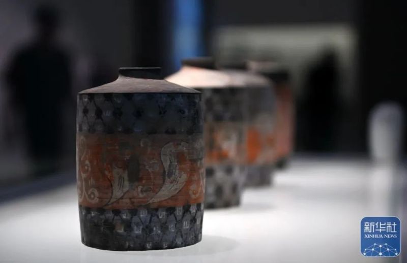 | 陕西历史博物馆秦汉馆内展出的东汉朱书陶罐(5月13日摄)。|