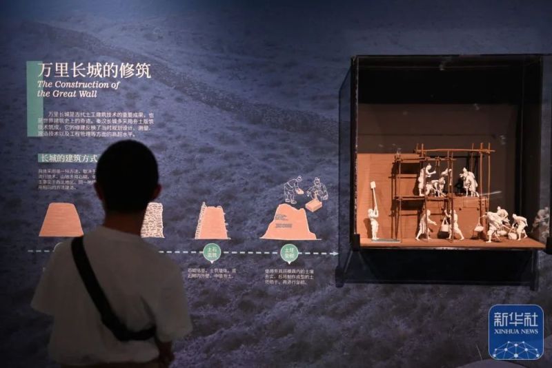 | 5月6日,观众在陕西历史博物馆秦汉馆了解万里长城的修筑知识。|