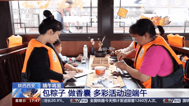 在西咸新区沣东新城昆明池·七夕公园,人们坐在游船上包粽子、做香囊,热热闹闹迎佳节。
