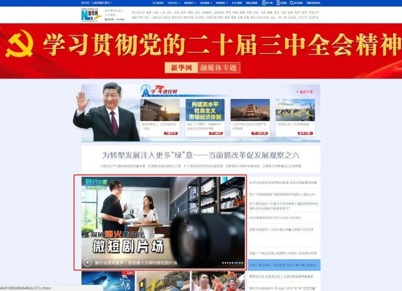 近日,由新华网海外社交媒体传播中心、新华网陕西频道联合制作,新华网、新华社陕西分社新华社国际传播平台联合出品的《探班爆火全网的微短剧片场》在新华网首页刊发,英文版同步上线,聚焦西咸新区影视微短剧基地,挖掘爆火微短剧背后的故事。