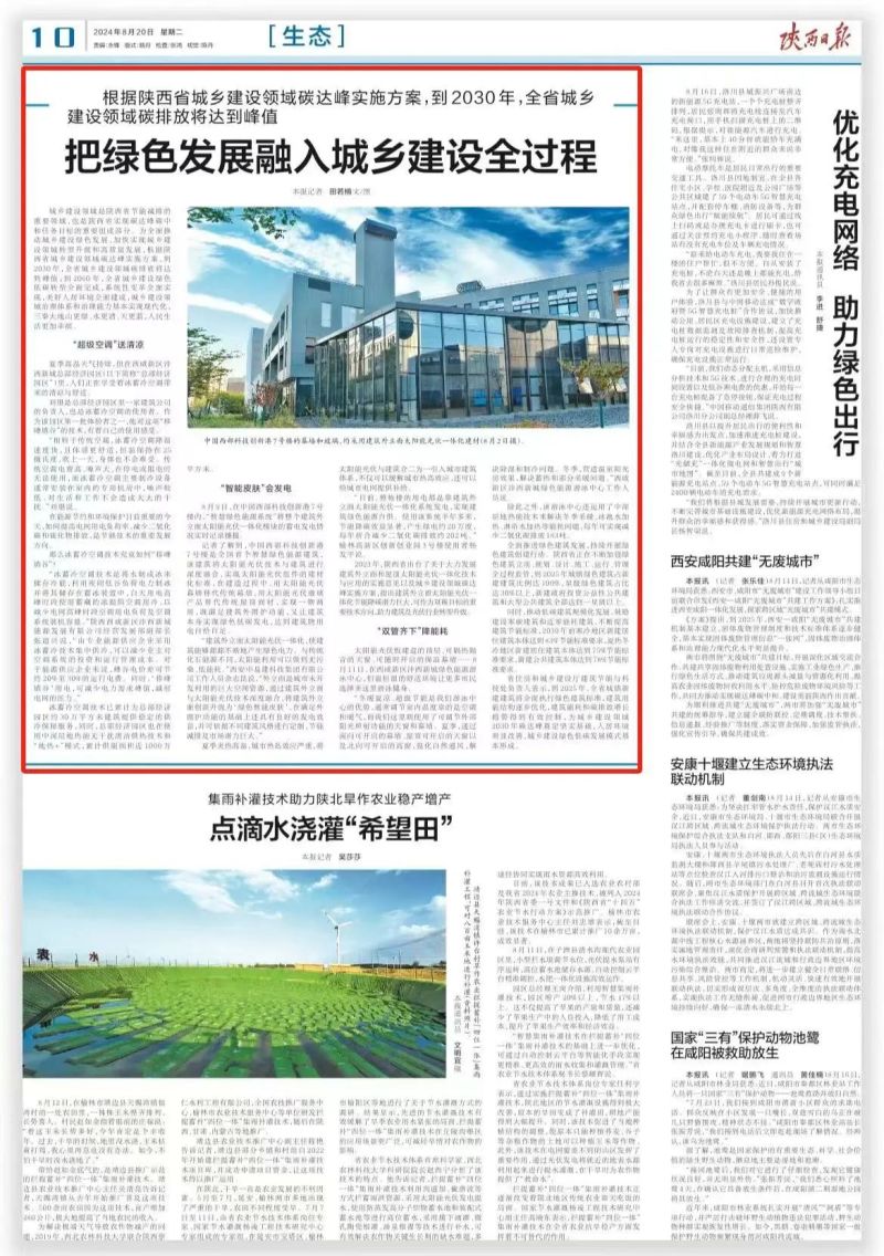 陕西日报刊发报道《把绿色发展融入城乡建设全过程》