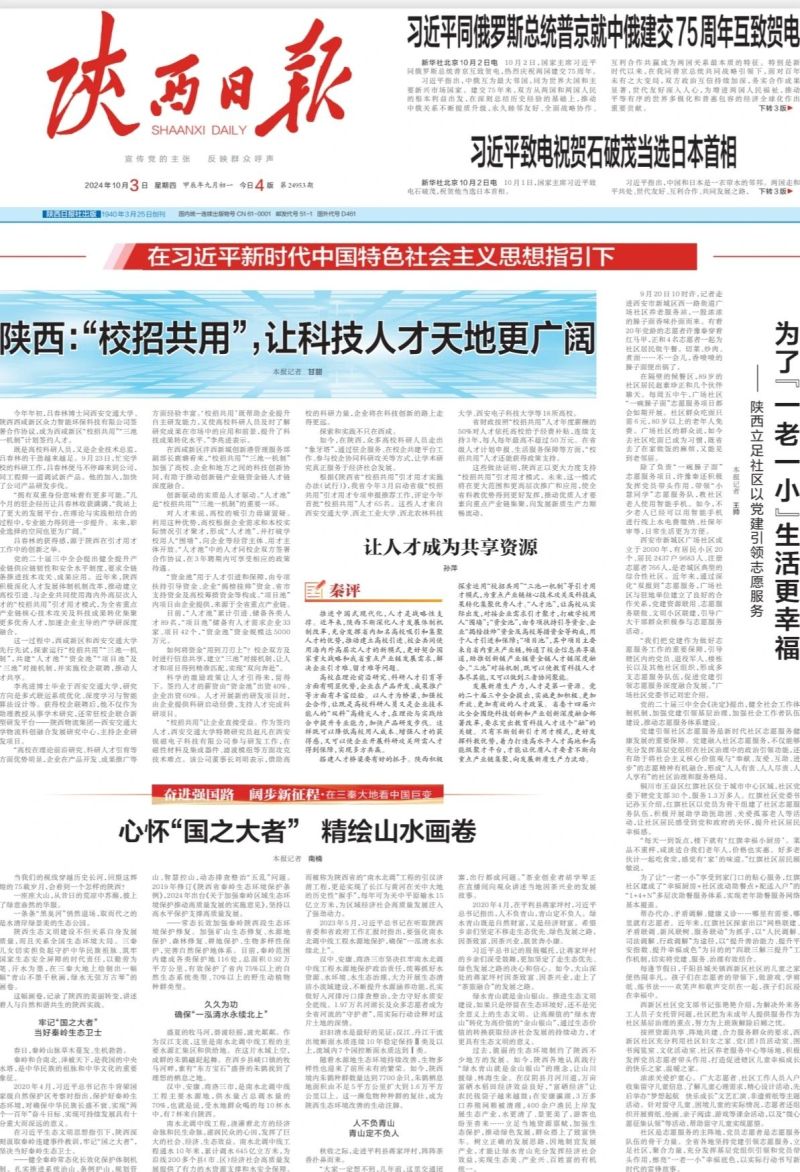 10月3日,陕西日报头版头条刊发《陕西:“校招共用”让科技人才天地更广阔》,报道陕西探索“校招共用”模式推动高校与企业共享人才资源的西咸实践,全文如下。
