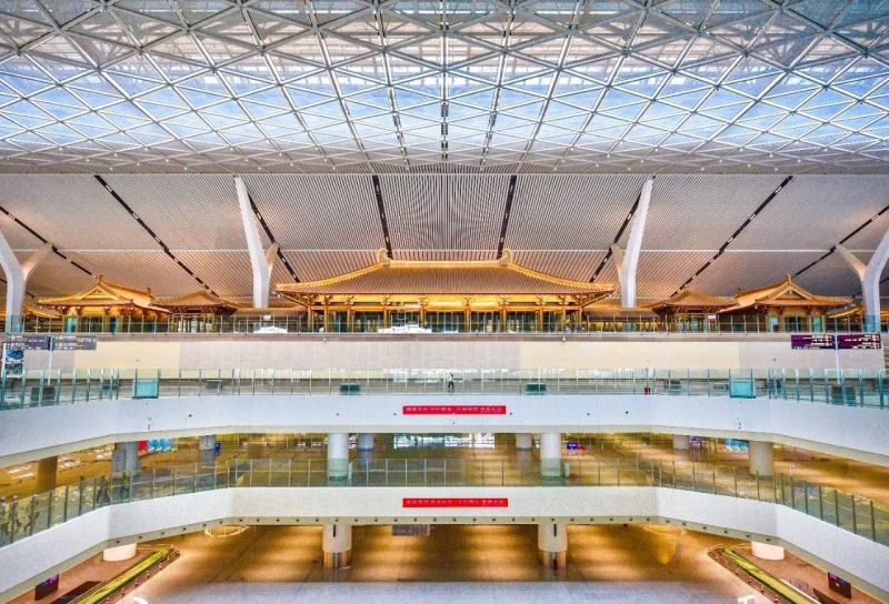 西安咸阳国际机场三期扩建工程不仅是一项重大基础设施建设项目,还是展示陕西元素和特色文化的重要窗口。工程共改造1条跑道,新建2条跑道和70万平方米的东航站楼,预留捷运系统,新建货运、消防救援等辅助生产生活设施,配套建设供电、给排水、供热、制冷等设施。