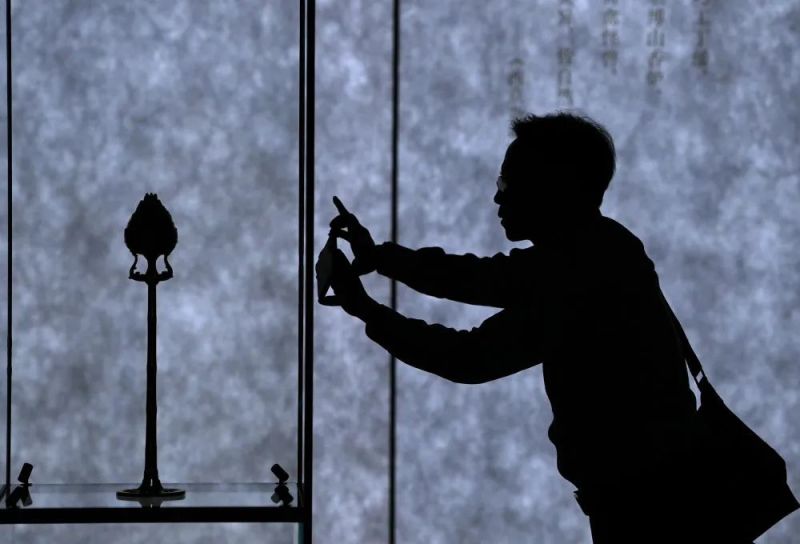 | 2024年5月18日,在位于西咸新区的陕西历史博物馆秦汉馆,观众观看“技与美”专题陈列上展出的西汉鎏金银竹节铜熏炉。新华社记者 李一博 摄 |