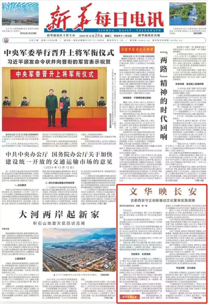 2024年12月24日,新华社发布《文华映长安——古都西安守正创新推动文化繁荣实践观察》:
