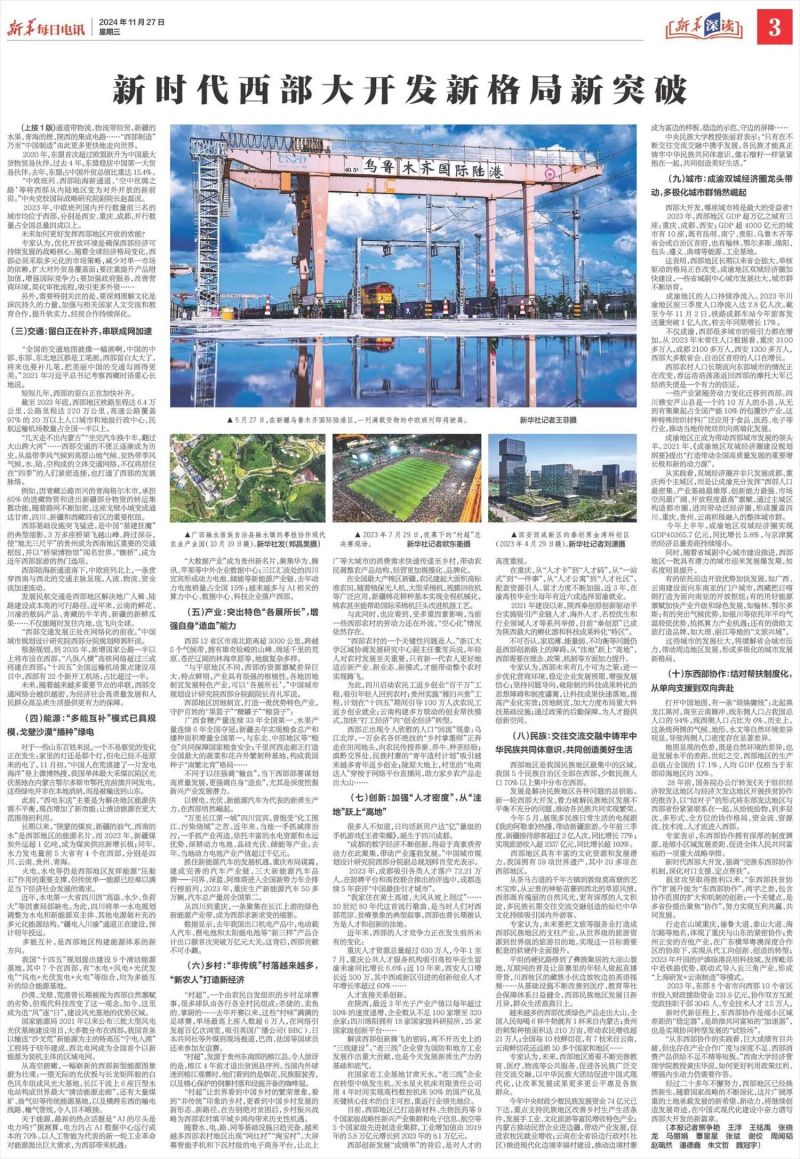 2024年11月27日,新华社发布《新华深读|再迎风口!十个关键词重新定义中国西部》: