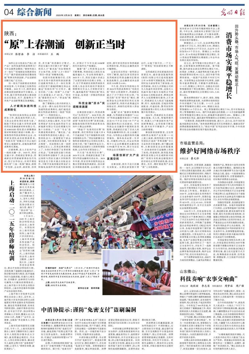 今天,光明日报刊发《陕西:“原”上春潮涌 创新正当时》,聚焦秦创原总窗口西咸新区持续深化科技成果转化“三项改革”,为加快培育壮大新质生产力注入强劲动能。