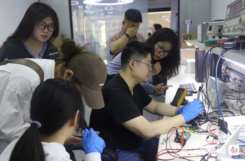 4月27日,在南瑞集团西安交大新型电力系统联合研发中心,校企联合培养的博士后张崇兴正与团队研讨用电故障诊断样机。他介绍,该样机结合自主研发的诊断软件,可快速精准定位电力设备故障点。