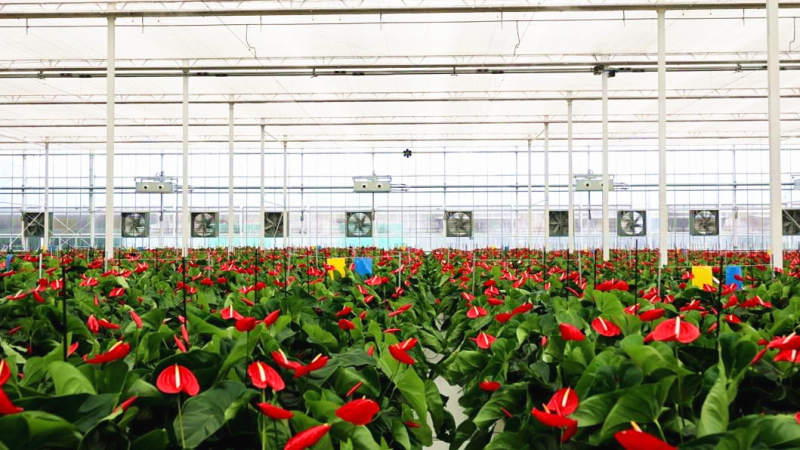 采访中,李朝阳遗憾表示,因红掌对生长环境要求苛刻,无法带记者进入温室参观。但隔着玻璃幕墙,他介绍了红掌种植情况:红掌采用透气保水性更好的花泥基质,温室内同样采用自动化控制系统,通过一台电脑即可统一管理环境控制、数据检测等设备,实现全年高品质产出,单枝生长周期约45天。