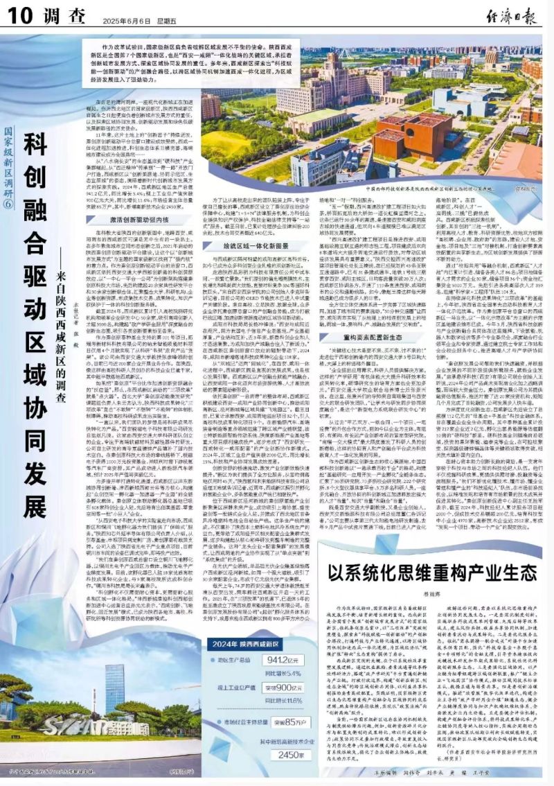 今天,《经济日报》发布《科创融合驱动区域协同发展——来自陕西西咸新区的调查》,整版聚焦陕西西咸新区,关注新区探索产创融合路径,加速西咸一体化进程的新举措、新成效,全文如下。