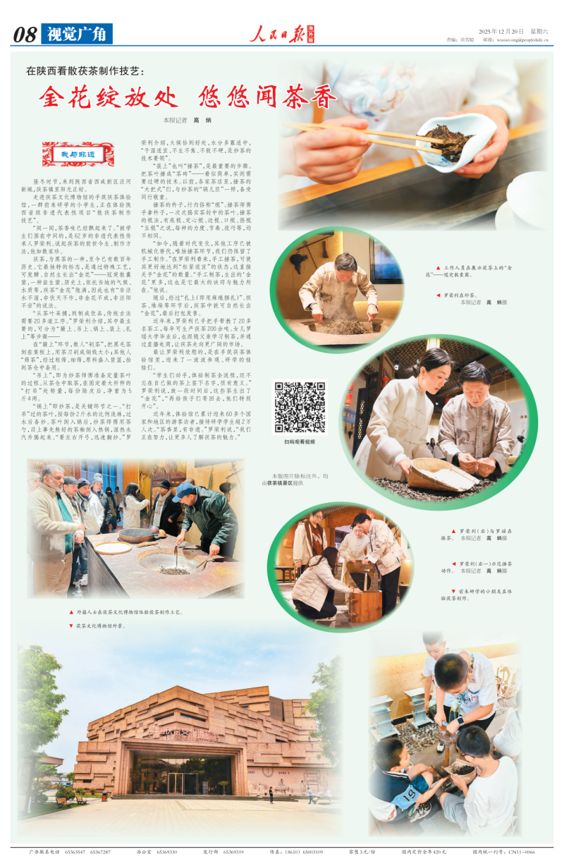 人民日报海外版刊发报道《在陕西看散茯茶制作技艺:金花绽放处 悠悠闻茶香(我与非遗)》