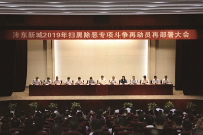6月10日,沣东新城召开2019年扫黑除恶专项斗争再动员再部署大会,贯彻落实党中央扫黑除恶第12督导组和省委、西安市委、西咸新区党工委的工作部署,下发《沣东新城关于坚决贯彻中央督导组要求开展“三个聚焦五个再一遍三个大起底”工作安排》,安排了19项具体任务,进一步推动扫黑除恶专项斗争向纵深发展。