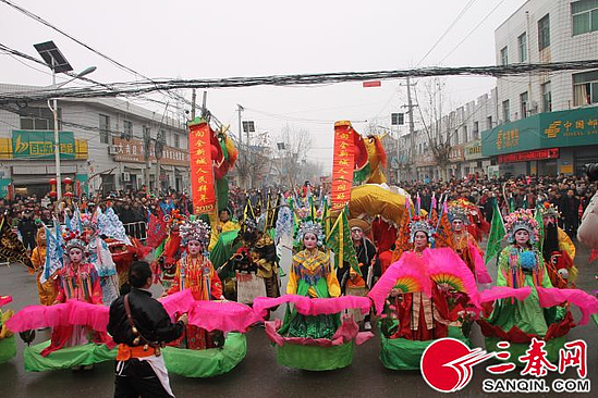 三秦都市报—三秦网讯(记者马骁)2月18日,农历正月十四,元宵节前夕。近1500名演职人员走上西咸新区空港新城太平镇街头,为当地群众表演了底张秦汉战鼓、太平枣坪竹马两项非遗文化项目为代表的16场展演,在丰富群众文化生活的同时,庆祝元宵佳节、同贺猪年新春。