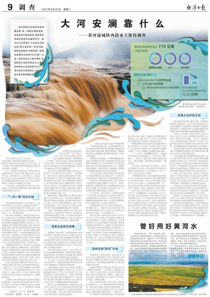 8月31日,经济日报刊发《大河安澜靠什么——黄河流域陕西段水土保持调查》报道西咸新区积极推进渭河、沣河、泾河治理,再现河道清水长流、两岸碧绿的生态新格局,不断刷新城市“颜值”。