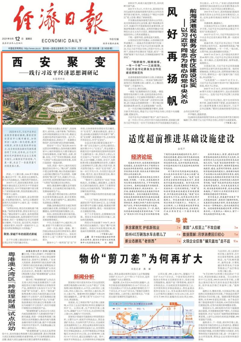 今天,经济日报头版头条刊发《西安聚变——践行习近平经济思想调研记》聚焦西安,以习近平新时代中国特色社会主义思想为指引,开拓进取、气象一新,走出了一条高质量可持续发展之路。