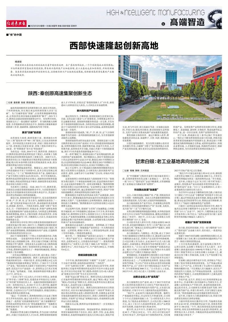 3月20日,新华社《经济参考报》刊发稿件《西部快速隆起创新高地》报道西咸新区作为秦创原总窗口通过推动创新要素高效聚合促进创新链和产业链动态联动,不断激发人才活力逐渐形成创新驱动高质量发展的产业格局,部分节选如下。