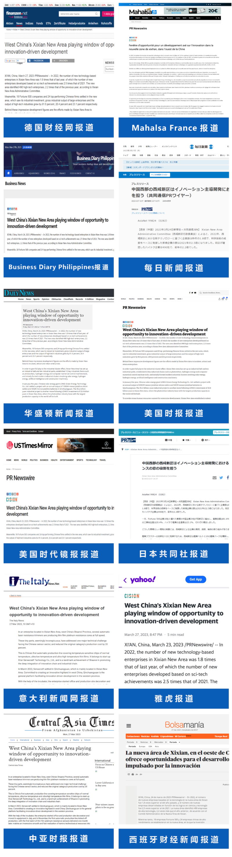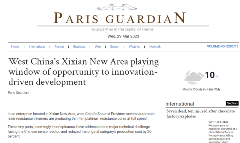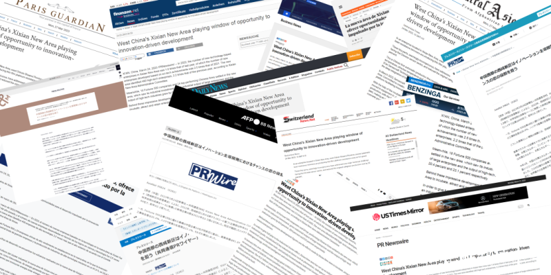 近日,全球通讯社联盟发布文章《West China’s Xixian New Area playing window of opportunity to innovation-driven development》(西咸新区:为中国西部创新发展打开机遇之窗)全球480多家外媒关注,截至3月29日10时总浏览量达到1.8亿人次。