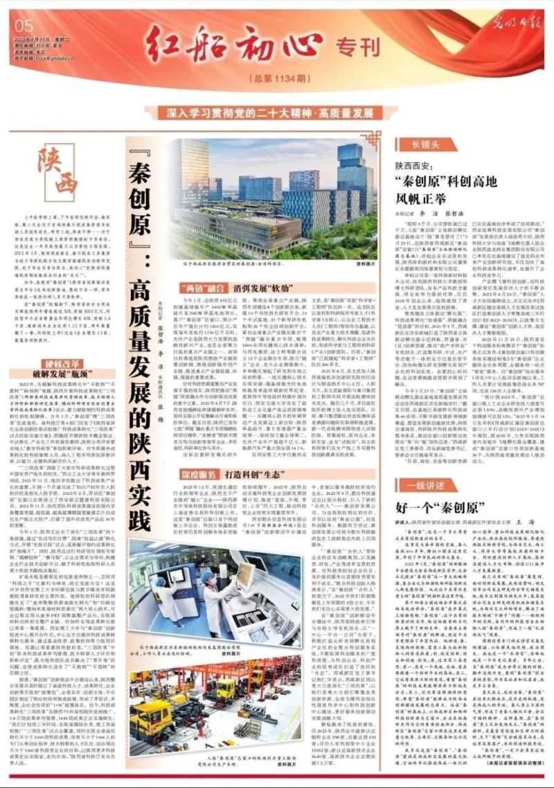 今天,光明日报整版刊发《陕西“秦创原”:高质量发展的陕西实践》,聚焦西咸新区抢抓秦创原总窗口建设机遇,全面深化“三项改革”,紧抓“两链融合”,不断完善高校、科研院所科技成果转化服务体系,激发广大科技人员创新创业活力,为谱写陕西高质量发展新篇章添动能,全文如下。